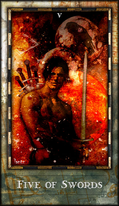 The 5 of Swords is about facing reality. The 5 is an assignment number, and in the slighly more difficult suit of Swords, it means you face a difficult challenge where your past experiences could hold you down.