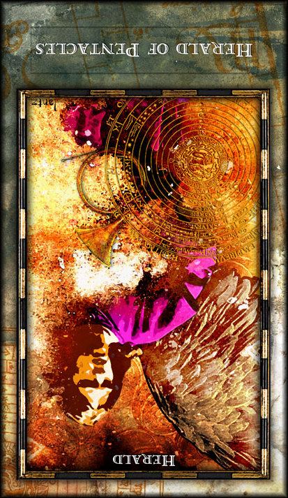 Pages explore and gather information about the road ahead, with an almost naive attitude. The Page of Pentacles is sometimes described as a bridge builder; Pentacles is the suit where the actual work is done, and the Page here enables those that follow to quickly cross difficult terrain.