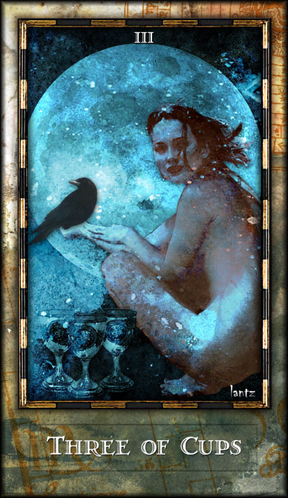 The 3 of Cups represents hope, faith and love. The 3 is a reward number and in this suit of Cups your feelings during that number will be that of joy and self-contentment.