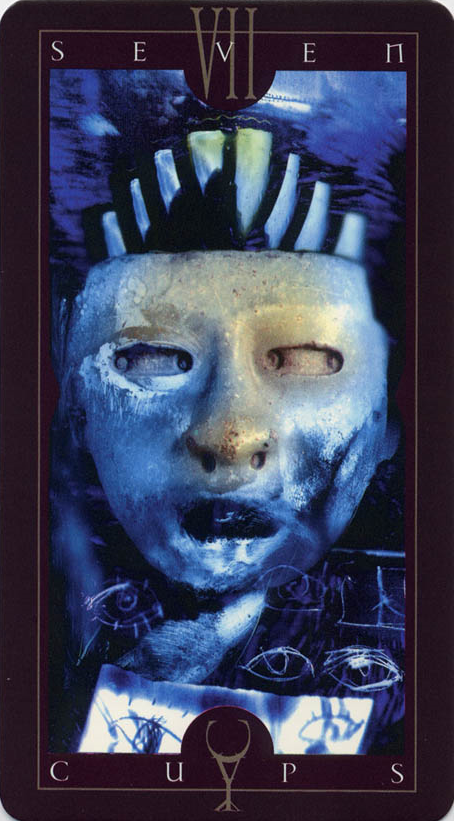 The 7 of Cups is about making a choice between different ideals. But Cups, with the water element, don't like making definitive choices that much, making this 7 in this suit a bit of a hard choice.