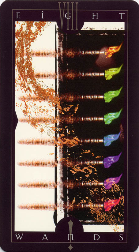 The 8 is the third and last assignment number. The element Fire, associated with Wands, doesn't like assignments much. It prefers to do exactly as it pleases.