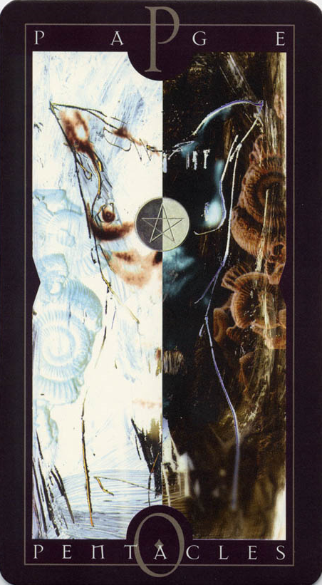 Pages explore and gather information about the road ahead, with an almost naive attitude. The Page of Pentacles is sometimes described as a bridge builder; Pentacles is the suit where the actual work is done, and the Page here enables those that follow to quickly cross difficult terrain.