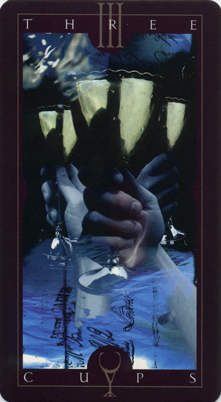 The 3 of Cups represents hope, faith and love. The 3 is a reward number and in this suit of Cups your feelings during that number will be that of joy and self-contentment.