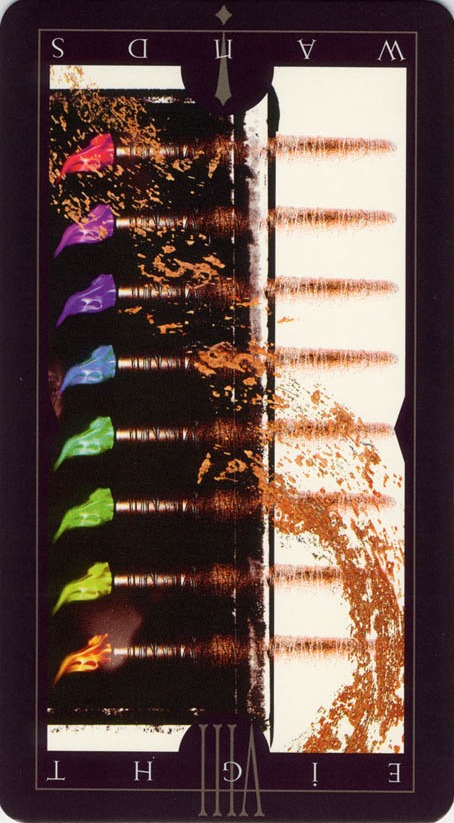 The 8 is the third and last assignment number. The element Fire, associated with Wands, doesn't like assignments much. It prefers to do exactly as it pleases.