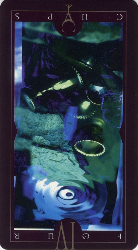 With the 4, the second cycle of this suit is commenced, where a choice between structure and feeling has to be made, where old securities have to be let go of to work towards a new future. But like Wands, Cups don't like structure much, they prefer to be free and dream rather than to make commitments and go for something.