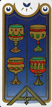 With the 4, the second cycle of this suit is commenced, where a choice between structure and feeling has to be made, where old securities have to be let go of to work towards a new future. But like Wands, Cups don't like structure much, they prefer to be free and dream rather than to make commitments and go for something.