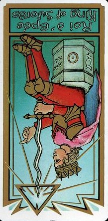 The King of Swords rules with diplomacy and a strong sense of responsibility, not just for himself but also for those around him, yet he is not afraid to make heavy decisions that compel him to eliminate dangers and dangerous opponents with some force.