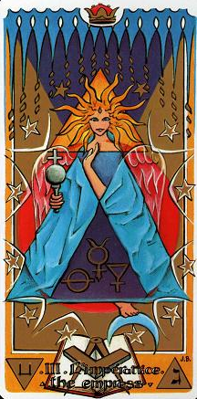 The Empress carries the number 3. This is the number of birth, of plenty, of harvest, of summer, of the first results. The number 3 stands for joy and fun, for creativity and fantasy, for warmth and humor.