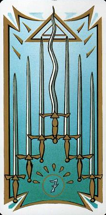 The 7 of Swords is about making slow progress because you can't trust the situation and/or people around you.