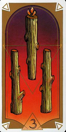 This card is about exposing your new ideas to the world. The Wand's element fire goes well with the number 3, as 3 is an output number, a number of results. Fire likes getting to results quickly.