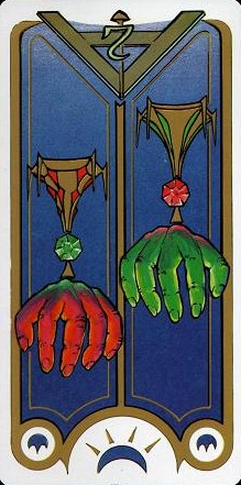 This the first assignment number of the Cups suit. Unlike Wands, with the Fire element, Cups, with the water element, has a lot more patience. Water is by nature more introspective, and this second card in the Cups suit is indeed about exploring yourself. The outcome is uncertain as always, but it usually results in better acceptance of yourself.