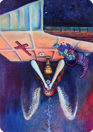 The 'Human' reading is designed for a single person, and tell the questioner something about what is important for him/her at the moment the cards are drawn. This reading can often also indicate a good course through difficult terrain.