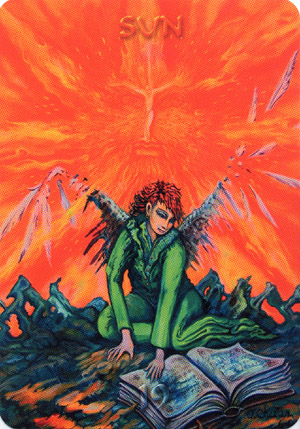 With The Sun the third and final cycle of Tarot is commenced. The first cycle was the upperworld or childphase, a place to start and gain inputs. Here you gained wisdoms, knowledge and ideas. The second cycle was the underworld or adult phase or assignments phase, the hard cycle where you had to really work for gains. This third cycle that starts at The Sun, is the phase of rewards, of enjoyment of results.