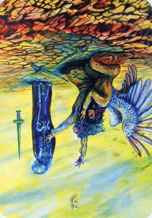 This card falls when you've completed all assignments, overcome all obstacles and are completely at peace with yourself due to your accomplishments. Yet Tarot wouldn't be Tarot if it didn't challenge you to enter entirely new worlds and start the process all over again.