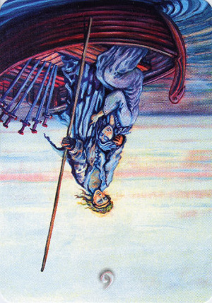 The person in the center of the card has completed many journeys already, and is completely at ease. Yet she continues to move, for having reached your goals is no reason to stop moving.