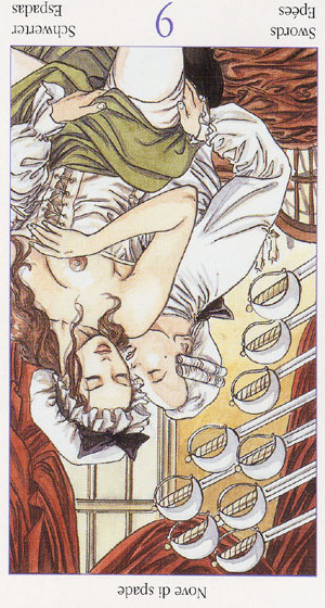 The 9 of Swords represents relief from cropped-up grief. The number 9 is a number of reward and rest and accomplishment. In the element of Swords there is not a lot of time for rest, but without any rest you'd just burn yourself out.