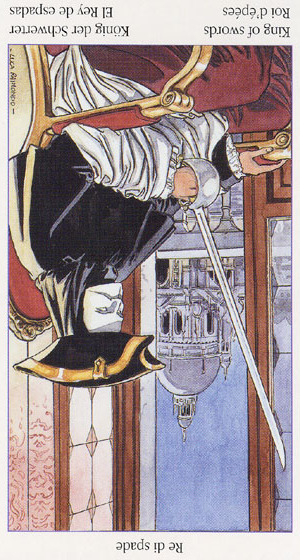 The King of Swords rules with diplomacy and a strong sense of responsibility, not just for himself but also for those around him, yet he is not afraid to make heavy decisions that compel him to eliminate dangers and dangerous opponents with some force.