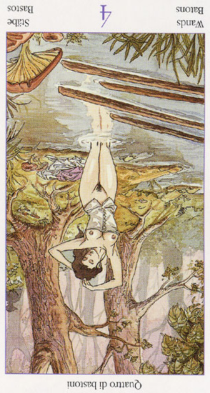 The 4 of Pentacles is about holding on to what you got. The number 4 represents structure and order, and fits well with the suit's element, Earth.