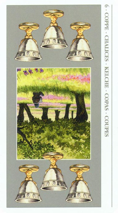 The 6 of Cups is about having confidence in something. It is the number of security and harmony. In the suit of Cups this means to be in harmony with yourself.