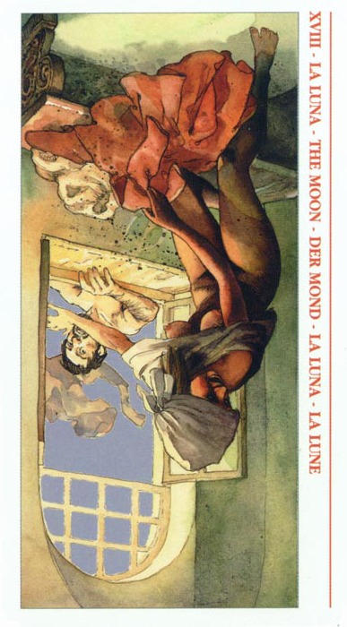 The Hermit, also a 9, closed off the upperworld. The Moon closes the underworld.