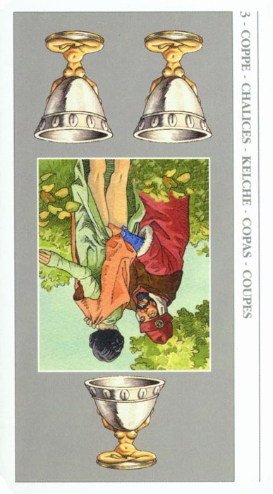 The 3 of Cups represents hope, faith and love. The 3 is a reward number and in this suit of Cups your feelings during that number will be that of joy and self-contentment.