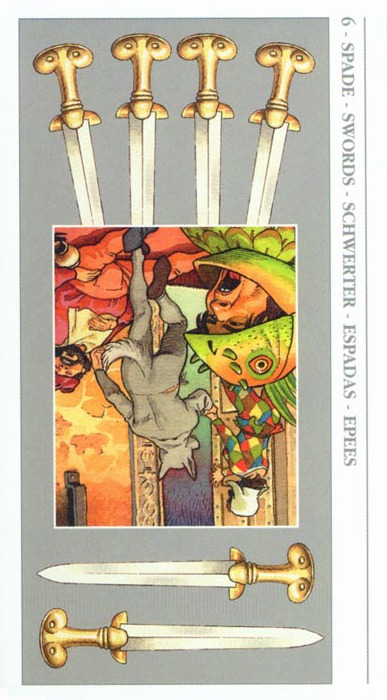 The 6 of Swords is a reward number after the hard assignment in 5 of Swords, it brings you to a safe place to rest a bit.