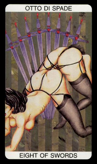 The 8 of Swords is about slowly regaining strength and energy. The 8 is an assignment number, and in the element of Swords it's a bit harder than usual.