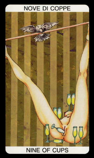 The 9 of Cups represents achievement and contentment. It is an excellent time to take some rest and enjoy yourself.