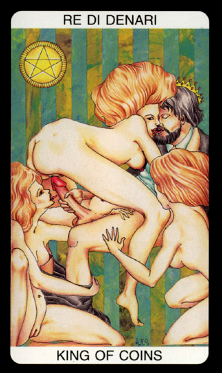 The King of Pentacles uses his Earthly attributes to rule. He goes about his work like an old style business man; he avoids unnecessary risks, aims for real results, and acts from confidence.