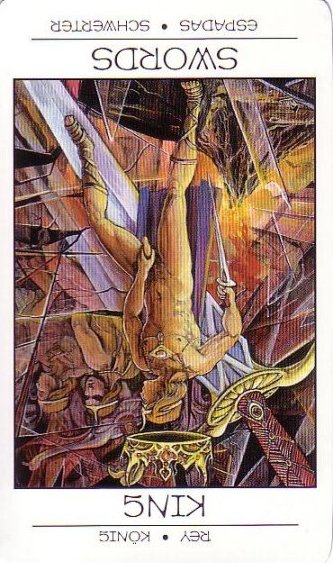 The King of Swords rules with diplomacy and a strong sense of responsibility, not just for himself but also for those around him, yet he is not afraid to make heavy decisions that compel him to eliminate dangers and dangerous opponents with some force.