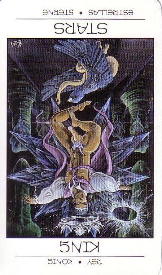 The King of Pentacles uses his Earthly attributes to rule. He goes about his work like an old style business man; he avoids unnecessary risks, aims for real results, and acts from confidence.