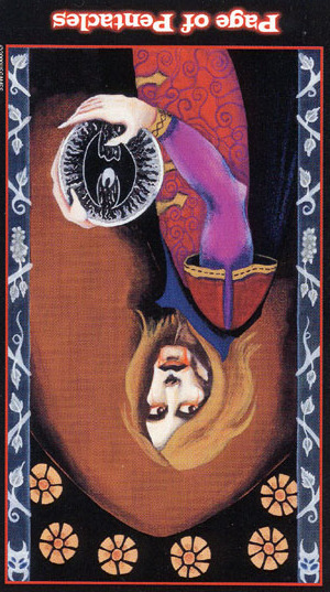 Pages explore and gather information about the road ahead, with an almost naive attitude. The Page of Pentacles is sometimes described as a bridge builder; Pentacles is the suit where the actual work is done, and the Page here enables those that follow to quickly cross difficult terrain.
