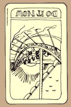 The Magician announced four wisdoms. In the cards that followed, they came into view one by one. The traveler of Tarot has accumulated the baggage with which to travel. This card signifies a choice between staying with the old and familiar, or (the way of Tarot:) going to new experiences and lessons.