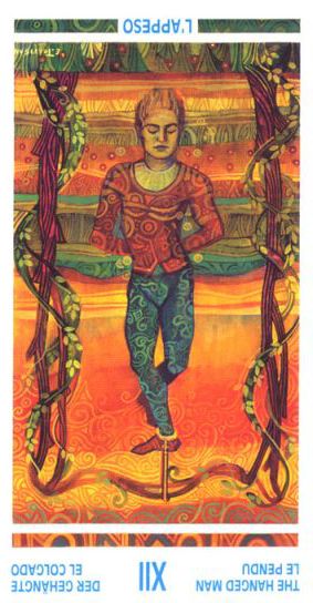 First you learned that you're not a plaything of fate, that you can make your own choices. Then you've learned how to fend for yourself and face yourself. Now, at The Hanged Man, you can learn to let go. You no longer have to cling to old values. You've found strength in yourself and by letting go, you allow growth.