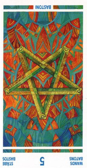The 5 of Wands represents competition. The 5 is the second assignment number, and therefore a difficult card. 5 combined with the Wand's element fire challenges you. You'll have to fight hard for your idea, but you stand a good chance of succeeding.