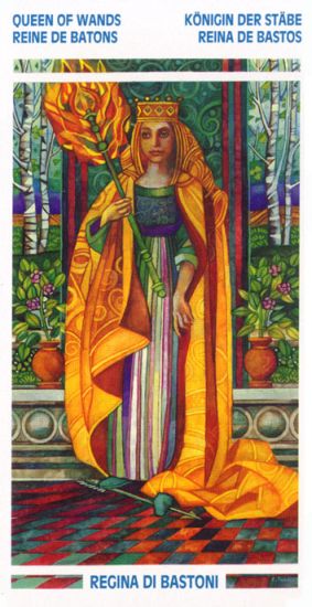 The Queen of Wands is drawn when you (have to) become more aware of the properties of the Wands suit; vitality, optimism and enthousiasm.