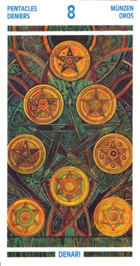 This card is about exposing your new ideas to the world. The Wand's element fire goes well with the number 3, as 3 is an output number, a number of results. Fire likes getting to results quickly.