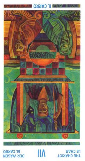 During the prevous card, The Lovers, all the wisdom of the first cards in the deck has been processed and a choice was made for personal growth. Now it's time to do something with all this baggage, to actually travel the road. A lot has been done so far, wisdoms have been accumulated and integrated into one's personality.