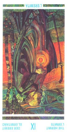 The Hermit carries the number 9. This is the highest base number. After 9 the composed numbers emerge. Therefore the number 9 is the gateway to a higher order. It is also a place to rest before embarking on the next leg of the journey.