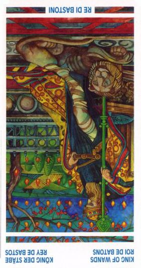 The King of Wands uses the properties of Wands (vitality, optimism, enthousiasm) to go out with confidence. He is seen as a leader with charisma.