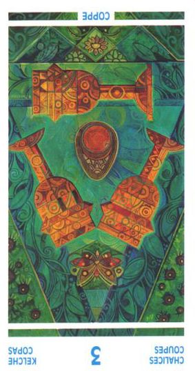 With the 4, the second cycle of this suit is commenced, where a choice between structure and feeling has to be made, where old securities have to be let go of to work towards a new future. But like Wands, Cups don't like structure much, they prefer to be free and dream rather than to make commitments and go for something.