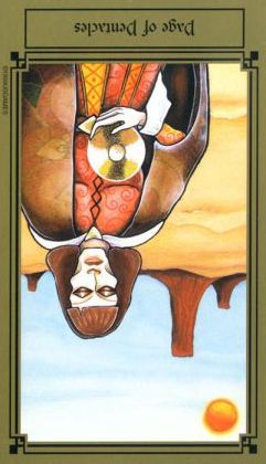 Pages explore and gather information about the road ahead, with an almost naive attitude. The Page of Pentacles is sometimes described as a bridge builder; Pentacles is the suit where the actual work is done, and the Page here enables those that follow to quickly cross difficult terrain.