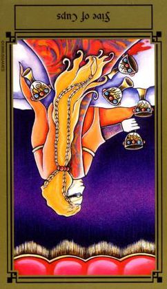 The 5 of Cups is about overcoming sadness and disappointment. You've let go of your old securities to embrace the new and exciting, now something has gone awry and you feel bad about that. But don't forget to notice those things that did go right.