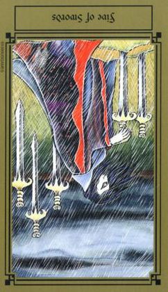 The 5 of Swords is about facing reality. The 5 is an assignment number, and in the slighly more difficult suit of Swords, it means you face a difficult challenge where your past experiences could hold you down.