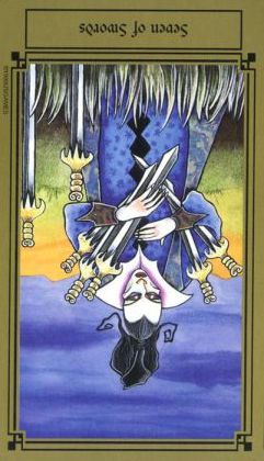 The 7 of Swords is about making slow progress because you can't trust the situation and/or people around you.