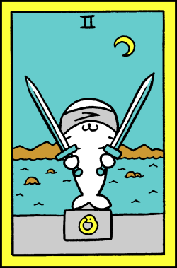 The 2 is an assignment number in tarot, and in this case of the 2 of Swords, it's about being forced to wait for something, often even while blindfolded in some sense.