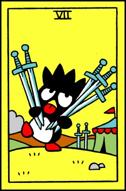 The 7 of Swords is about making slow progress because you can't trust the situation and/or people around you.