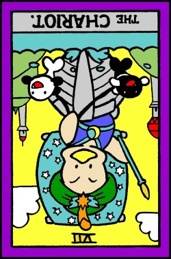 During the prevous card, The Lovers, all the wisdom of the first cards in the deck has been processed and a choice was made for personal growth. Now it's time to do something with all this baggage, to actually travel the road. A lot has been done so far, wisdoms have been accumulated and integrated into one's personality.