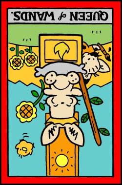 The Queen of Wands is drawn when you (have to) become more aware of the properties of the Wands suit; vitality, optimism and enthousiasm.