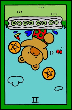 The 2 of Pentacles is an assignment number card, and the assignment here is to maintain a happy and relaxed attitude during a wait for results of what you started.